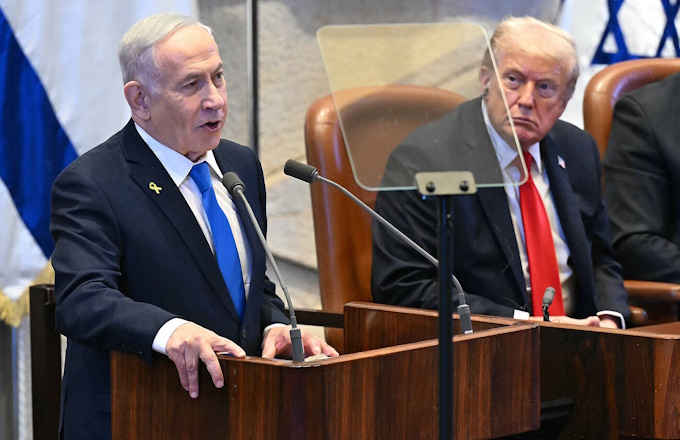 Nel suo discorso alla Knesset, prima che Trump prendesse la parola, il primo ministro Benjamin Netanyahu ha salutato e ringraziato in ebraico il presidente Usa: "Sarai inciso nella storia del nostro popolo. Sei già inciso nella storia dell'umanità". Passando all'inglese, Netanyahu ha ringraziato Trump per il suo sostegno, in particolare ha citato il riconoscimento Usa di Gerusalemme come capitale di Israele, di aver riconosciuto la sovranità israeliana sulle alture del Golan, e le colonie in Cisgiordania ed ancora di aver difeso Israele alle Nazioni Unite, aver mediato gli Accordi di Abramo, essersi ritirato dall'accordo nucleare iraniano e aver attaccato l'Iran a giugno. "Donald Trump - ha detto - è il più grande amico che Israele abbia mai avuto alla Casa Bianca".